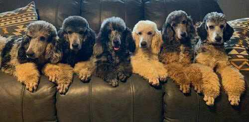 We founded TreeLine Poodles in 2017 after grooming professionally for 5 years I fell in love with the poodle coats and obvious loyalty to their families. Initally we started not knowing much, at the time this industry was not as researched in regards to genetics and testing so hands on learning it was! Our founding dogs Leo and Raven were a solid brown and solid black, to my surprise their first litter produced partis and tuxedos and my love and desire to learn more mulitiplied ten fold. Fast forward a few years and many many hours of research we finally got our first phantoms and the rest speaks for itself. Now we have a beautiful facility on an immense amount of acerage and colors that before id only dreamt of! My goal going forward is to provide families and other programs with amazing dogs with exceptional conformation, dispositions, health, and color. Sharing what I love and spreading the versatality and talents of poodles near and far! I hope to bring many along this journey with me building new friendships and continuing to gain knowledge that will continue to take our program to new heights.